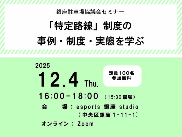 銀座駐車場協議会セミナー:「特定路線」制度の事例・制度・実態を学ぶ