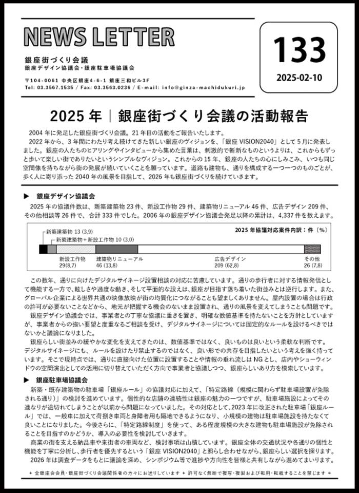 銀座街づくり会議の活動内容をお知らせするもので、全銀座会および銀座通連合会会員の方にはファックスで送信しています。